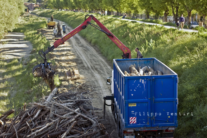 Rimozione dei tronchi e detriti che si erano accumulati alla base del Ponte Nuovo, nelle recenti piene del Fiume Savio