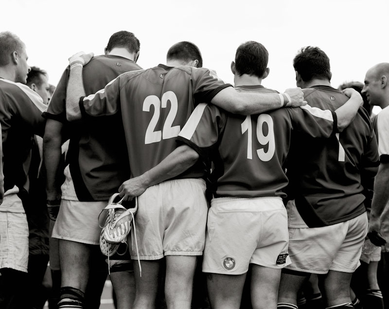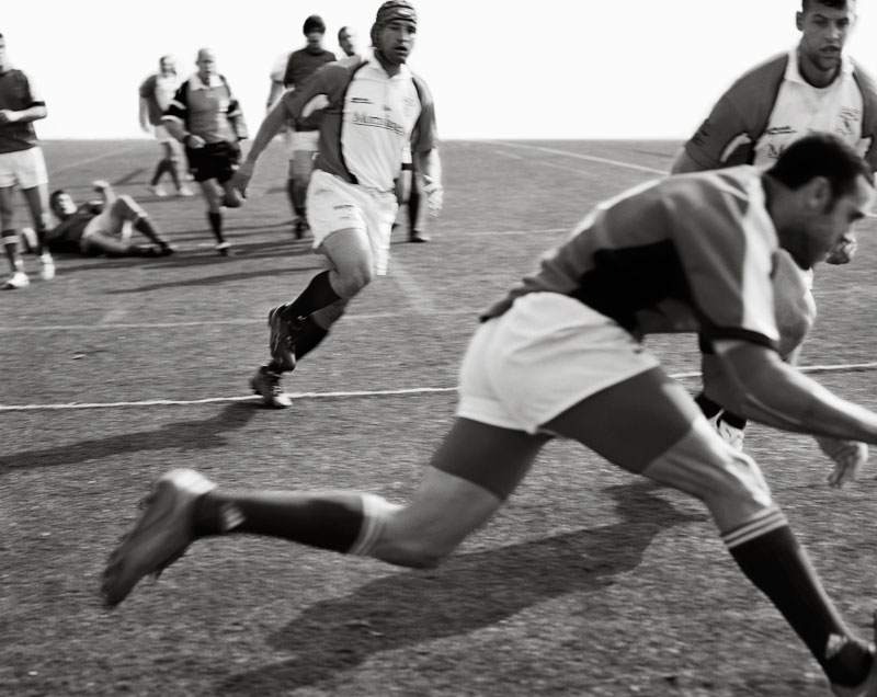 Le fotografie in bianco e nero di Rugby si concentrano sul gioco e gli allenamenti del New York Athletic Club Rugby Team durante la storica stagione del 2008 nella quale vinse il Rugby Super League Championship, prediligendo un punta di vista ravvicinato, quasi più quello del giocatore che quello dello spettatore, dall’erba e il fango più che dagli spalti. (clickblog.it)